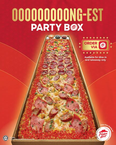 “Oooooooong Party Box merupakan olahan bertema Tahun Baru Cina dari pizza The Loooooooooong Party Box yang telah dilancarkan tahun lepas. Keunikan pizza ini terletak pada ukurannya sepanjang 1 meter dan sesuai untuk dikongsi bersama 10 orang atau lebih, menjadikannya sesuai untuk majlis atau keraian, terutama sewaktu makan malam besar sebelum perayaan Tahun Baru Cina” kata Emily Chong, Ketua Pegawai Pemasaran, Pizza Hut Malaysia.