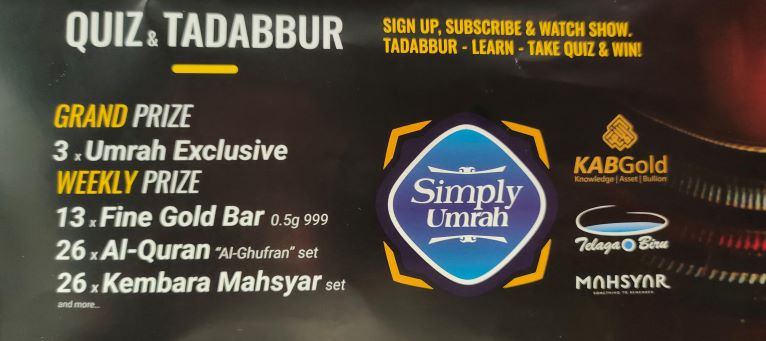 Setiap babak bacaan dan terjemahan AlQuran akan dipaparkan sebagai rujukan amat bermanfaat untuk tontonan sekeluarga.