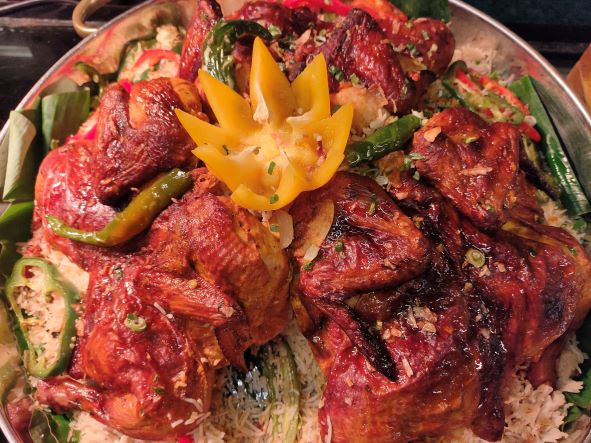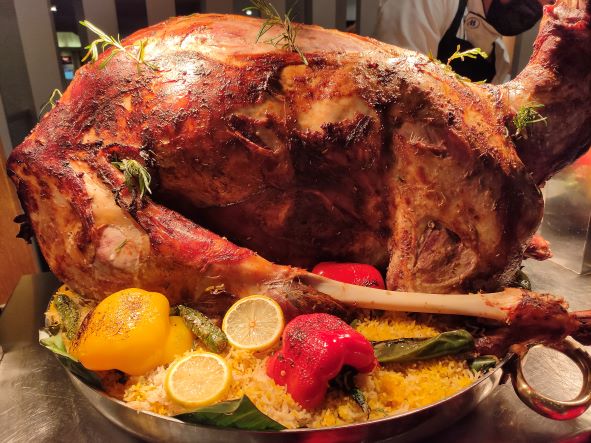 Antara sajian yang menjadi tumpuan pastinya Sup Gear Box, Kambing Golek bersama Nasi Mandy, Ayam Guling Panggang Berempah dengan Nasi Briyani, Rusuk Lembu Direneh dengan Assam Pedas, Gulai kawah Daging dengan Umbut Pisang.