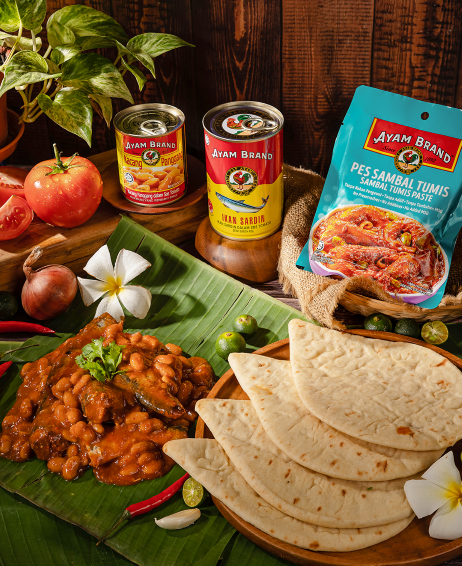 Hanya tiga ramuan yang diperlukan dan menggabungkan Sardin & Kacang Panggang Ayam Brand. Tumiskan Pes Sambal Tumis Ayam Brand sehingga naik bau. Masukkan Sardin dalam Sos Tomato Ayam Brand dan gaul dengan perlahan. Anda boleh memberikan sentuhan tersendiri dalam masakan ini dengan menambah air, sos pedas, garam, perahan limau atau bahan perasa, rempah atau herba lain secukup rasa. Akhir sekali, tambahkan Kacang Panggang dalam Sos Tomato Ayam Brand dan gaul sehingga masak sempurna.