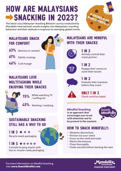 Antara hasil tinjauan itu mendapati tabiat pengambilan snek kian hari kian berubah seiring dengan kesedaran pengguna akan impak pilihan mereka terhadap kesejahteraan dan keseimbangan menyeluruh diri, serta alam sekitar. Rakyat Malaysia juga sedang berusaha untuk menjadi lebih bijak dalam tabiat snek mereka, dengan 54% responden mengawal saiz porsi secara aktif, manakala 51% menggunakan semua pancaindera untuk meningkatkan pengalaman snek mereka.