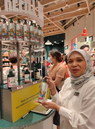 Change begins with small acts of love for the planet. This is not a gimmick. The honest truth is that transforming the way people buy beauty products is impossible without the support of the global community. With our refill stations, The Body Shop is encouraging people to hold on to their aluminium bottles and see that the power to make a positive change is, literally, in their hands.