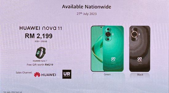 - HUAWEI nova 11 (8 GB RAM + 256 GB ROM), priced at RM 2,199
