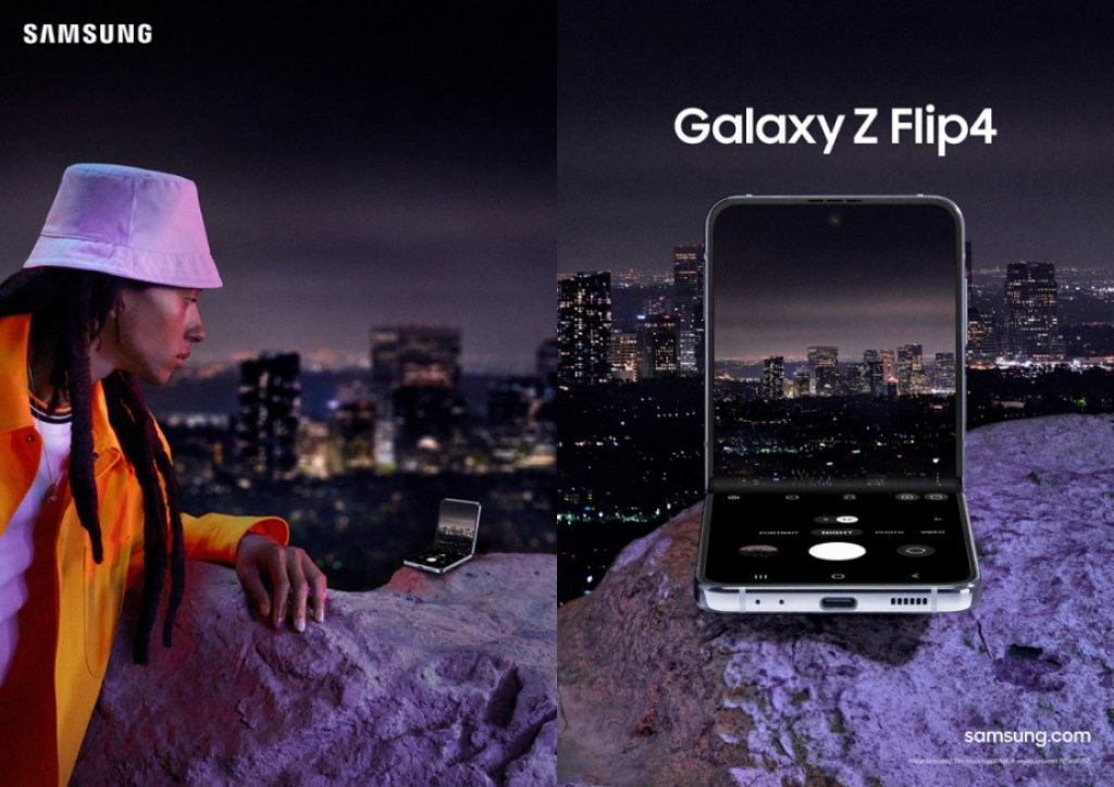 As you can fold your Galaxy Z Flip4 at a 90° angle, it can sit more stably on any surface than a bar phone that’s leaning against something. You can put it on top of your car for slow drive shoots or even against the wall like Spiderman. Use double-sided tape to secure it in place and let the camera roll. You can also hold your Galaxy Z Flip4 in your hands like a camcorder for a more secure grip and steadier shooting when you want to capture multi-angle videos. You can pan from left to right or from top to bottom.