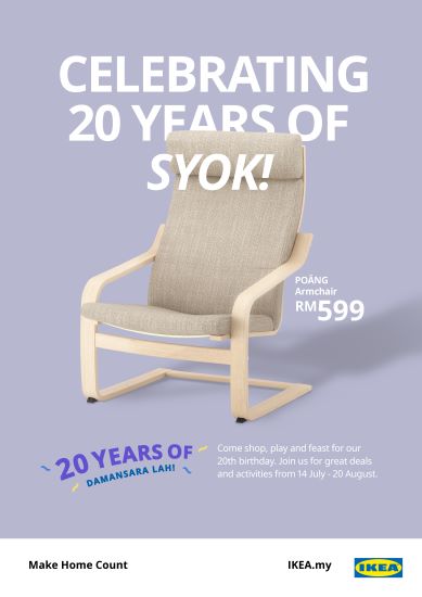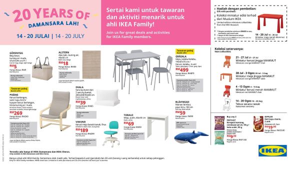 Bagi menyemarakkan sambutan ulang-tahun ke-20 IKEA Damansara, satu siri aktiviti dan tawaran yang mengujakan bakal menanti para pelanggan, bermula dari 14 Julai sehingga sambutan kemuncaknya pada 20 Ogos.