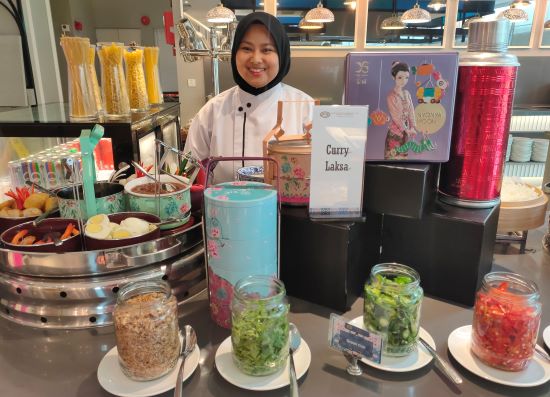 Disediakan oleh TIGA orang Cef yang berpengalaman, mereka yang berminat boleh datang ke hotel ini untuk merasai sendiri keunikan hidangan Peranakan Baba Nyonya yang dihasilkan oleh Cef Tengku Abdul Hakim, Cef Nabilah Hanum dan Cef Syafik iaitu Laksa Asam, Mi Kari dan Laksa Peranakan Nyonya.