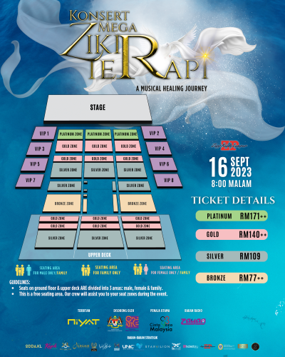 Orang ramai yang membeli tiket konsert zikir ini berpeluang memenangi Pakej Umrah secara percuma termasuktiket penerbangan pergi balik tajaan Legasi Travel and Tours.