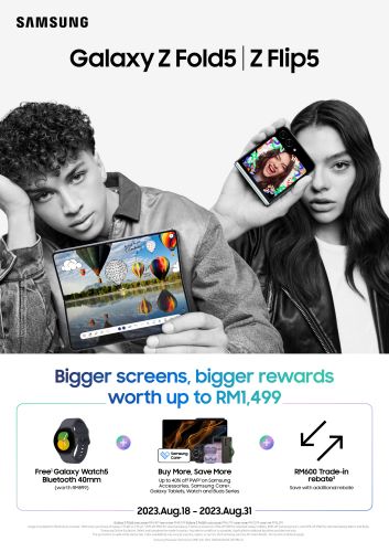 So, buy the Galaxy Z Flip5 and Galaxy Z Fold5 from now until 31 August 2023 and get rewards worth up to RM1,499!
