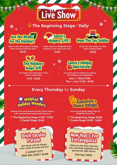 To keep the celebration going, Brick-tacular Holidays will dazzle with an array of live shows and performances, filling the air with holiday magic.