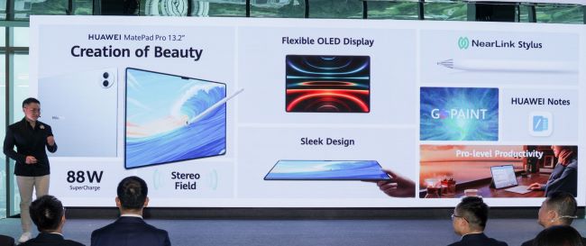 Tablet ini juga berfungsi dengan lancar apabila digandingkan bersama peranti pengguna pertama di dunia yang dikuasakan oleh teknologi NearLink, iaitu HUAWEI M-Pencil (generasi ke-3) yang memastikan pengalaman menulis yang lancar dan responsif, menjanjikan keberkesanan pada garis tepat dan tekanan penyesuaian. Skrin 13.2 ” tablet yang luas dioptimumkan lagi untuk pelbagai tugas dengan keupayaan berbilang tetingkapnya, menyediakan antara muka pengguna yang dinamik dan cekap.