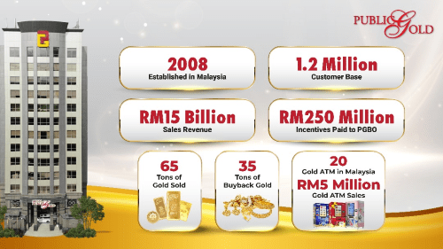 Sejak tertubuhnya syarikat Public Gold sejak tahun 2008, pelbagai kejayaan ditempa sehingga kini telah mempunyai 18 cawangan di seluruh Malaysia, dengan 1.2 juta pelanggan berdaftar dari seluruh negara termasuk Malaysia, Indonesia, Singapura dan Brunei, dan kini Public Gold telah melahirkan ramai usahawan yang telah berjaya dalam hidup dengan pelbagai latar belakang tanpa mengira usia.