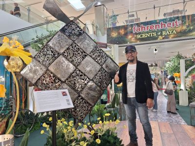 Spot the giant metal Ketupat sculpture located right in the middle of the mall! Crafted by Mohamad Kasat, an artist from Sarawak. This metal Ketupat sculpture weighs 117kg and is made out of recycled metals and vehicle parts with a commitment to environmental sustainability.