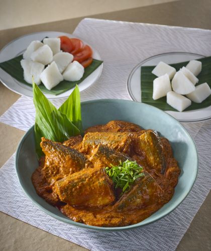 Walaupun hanya menggunakan empat ramuan, hidangan ini mempunyai kerumitan dan kekayaan rasa yang perlu dinikmati untuk mempercayai betapa mudah untuk menyediakannya. Masukkan satu pek Pes Rendang Ayam Brand™ ke dalam sebuah kuali dan goreng sehingga naik bau selama 2 hingga 3 minit. Kemudian, tambahkan 120ml Santan Ayam Brand™ dan kacau sehingga ramuan sebati. Buangkan kuah dalam sebuah tin Sardin atau Mackerel dalam Sos Tomato Ayam Brand™ (425g). Masukkan ikan yang telah ditoskan itu ke dalam kuah rendang. Kurangkan api dan biarkan kuah mereneh dengan dikacau sekali-sekala sehingga ia memekat. Tambah kerisik Ayam Brand™ (40g) dan gaul dengan perlahan sehingga segalanya sebati. Sardin dan Mackerel Ayam Brand™ kaya dengan kandungan Omega 3, protein dan kalsium yang pastinya akan memberikan khasiat tambahan pada hidangan rendang istimewa buat keluarga dan rakan-rakan.