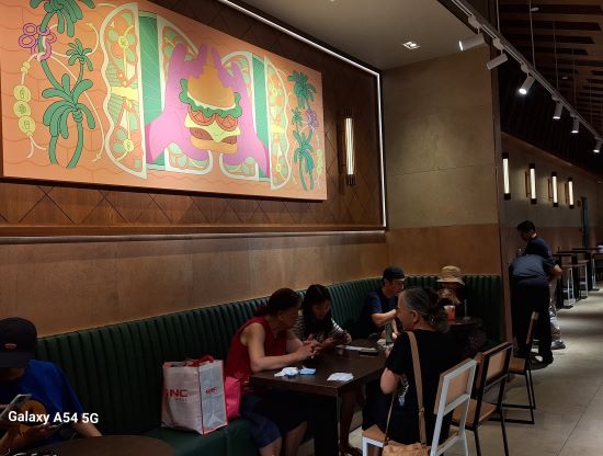 The interior artwork beautifully depicts the presentation of our iconic ShackBurger to our Malaysian guests, complemented by tropical elements and charming heritage shophouse windows, all infused with our distinctive iconography. It’s a delightful fusion of our brand’s warm hospitality and the vibrant local elements.