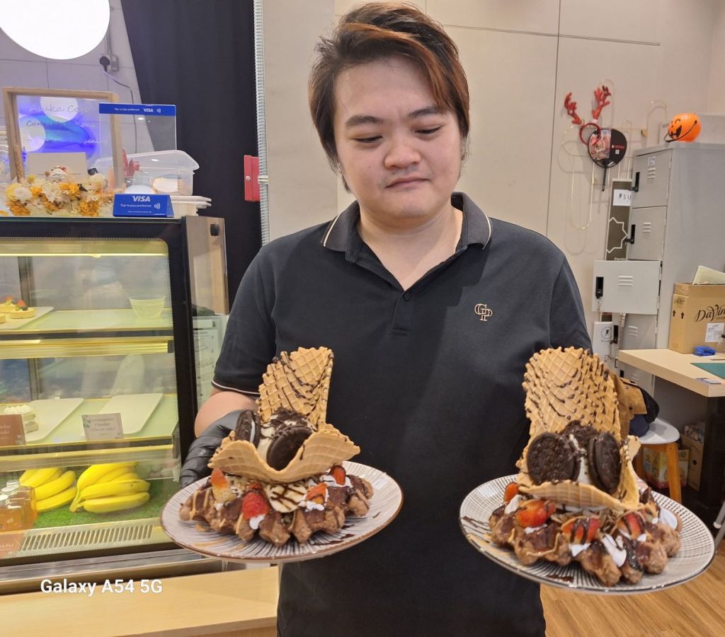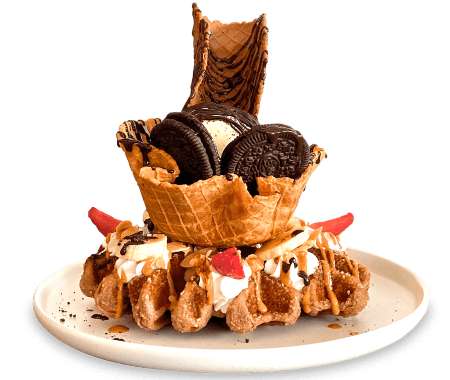 -Indulge in their specialty, King Waffle, Chocolate Belgian waffle loaded with yogurt ice cream, oreo, bananas, strawberry and many more!