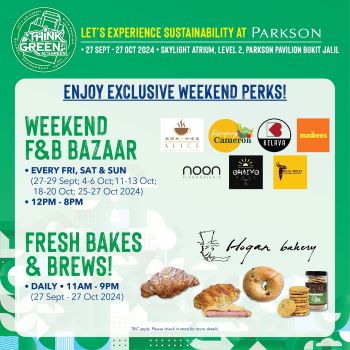 Partnership with Kraftangan Malaysia to bring local artisans to showcase their craftsmanship and to sell their handmade art and craft such as Batik Clothes, Batik Bags, Crochet items and many more. On every weekend (Sat & Sun) from 27 Sept to 27 Oct, they will also be hosting workshops on Batik Coloring, Batik Bracelets, Beads Bracelet, Crochet Knitting to foster creativity and cultural appreciation. Besides, local F&B bazaar are available on every Fri to Sun serving selections such as pastries, healthy food, vegan food, desserts, beverages and many more.