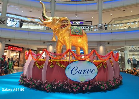Step into a world where tradition meets modernity, as the Centre Court comes alive with colourful rangolis, symbolising prosperity and joy, and majestic elephant sculptures, representing strength and power in Hindu culture.