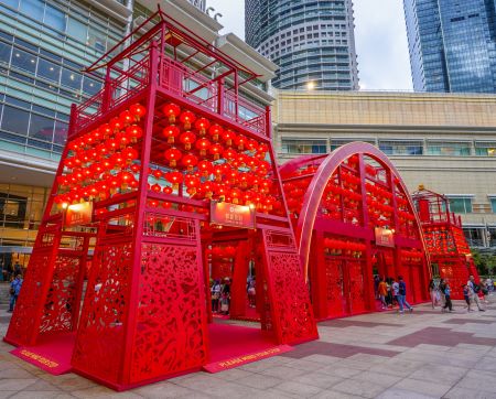 Melangkah ke dalam Taman Oriental berona merah dan emas yang memukau di Centre Court, dihiasi motif halus potongan kertas Cina. Sorotan utama termasuk gerbang besar, pagoda Cina yang menarik, dan dua belas zodiak Cina.
