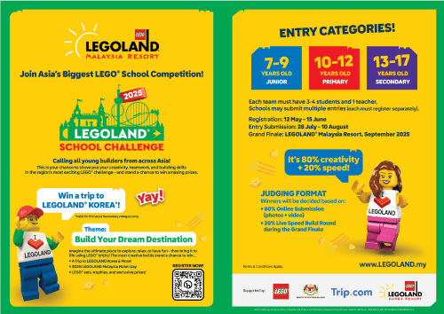 - Grand Prizes Go Global: Winners from the Primary and Secondary Categories will experience a trip to LEGOLAND Korea, while Junior Category champions will enjoy a getaway at LEGOLAND Malaysia.