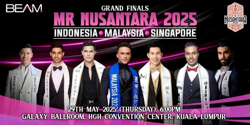 The grand finals of MR NUSANTARA 2025 will be held at the classy Galaxy Banquet Hall @ HGH Convention Centre in Sentul, Kuala Lumpur, with guests being served scrumptious Malaysian food.