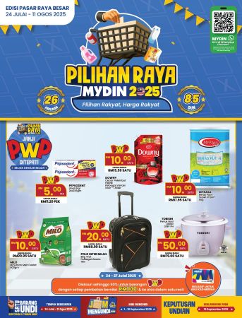 - Cashback Rakyat-Mulai 25 Julai hingga 5 Oktober 2025, pelanggan yang berbelanja mengguna Atome, Boost, MCash, SPayLater, Shopback dan Setel akan menikmati diskaun dan pulangan tunai sehingga RM300,000 di semua pasar raya MYDIN.