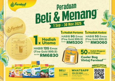 Fernleaf juga ingin menghargai pengguna setianya melalui peraduan Beli & Menang, yang menawarkan warga Malaysia peluang untuk memenangi hadiah-hadiah lumayan! Dari 1 September hingga 30 November 2025, melalui pembelian produk Fernleaf bernilai RM20 dan ke atas dalam satu resit, anda berpeluang memenangi jongkong emas 999.9 atau Cooler Bag Vintaj Fernleaf edisi terhad. Ini adalah penghargaan Fernleaf terhadap pengguna setia, anda kini berpeluang mendapatkan ganjaran Istimewa dengan pembelian harian anda!