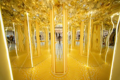 Di bahagian tengah struktur terletaknya Mirror Room, sebuah bilik imersif yang menampilkan panel pantulan yang mencipta ilusi visual penuh kilauan, sesuai untuk diabadikan sebagai foto menarik di media sosial.