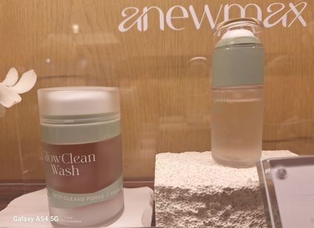 The Anewmax cleanse philosophy begins with GlowClean Wash, a formula powered by BotaniClear Infusion Technology, combining botanical enzymes and actives to dissolve blackheads, deeply cleanse pores, and brighten without stripping the skin.